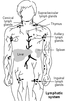 Russian massage is styled more like a Swedish massage. It’s duration lasts usually 60-90 minutes and while it is also used to ease muscle fatigue, its purposes are different than Sports massage. Russian Sports is done in a specific direction to promote Lymphatic Flow. Your lymph nodes are located all over you body. In the illustration to the right, all of the black dots are lymph nodes. These nodes contain disease-fighting white blood cells and filter out harmful microbes and toxins. Therefore, moving in the direction of the lymph nodes with different massage strokes helps those toxins to be eliminated quicker which highly benefits an athlete. Athletes produce a lot of Lactic acid in their muscles from strenuous training and this type of massage helps filter it out so they are more quickly ready for their next work-out.